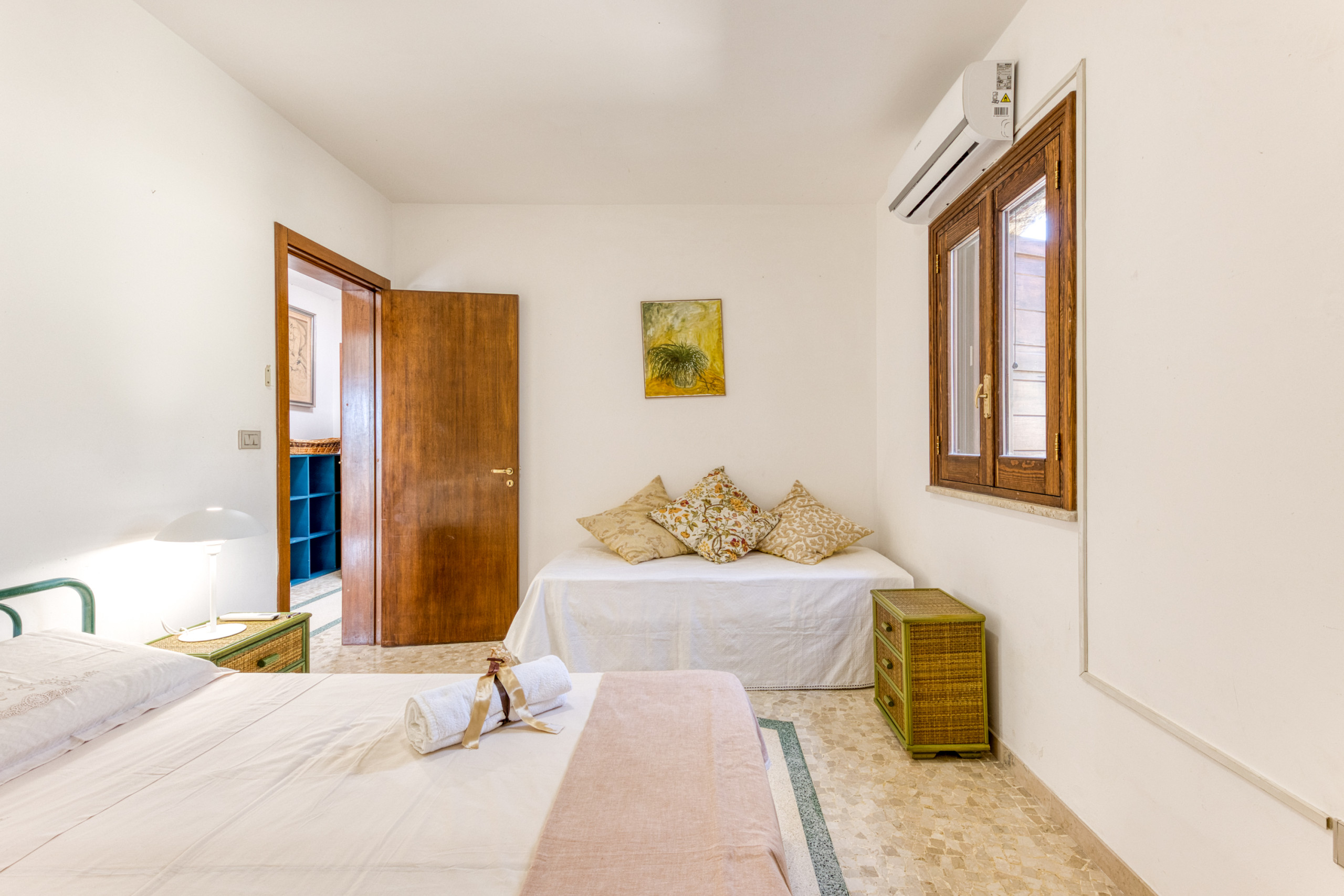 Das erste Schlafzimmer verfügt über ein Doppelbett, das zweite und das dritte jeweils über ein Doppel- und ein Einzelbett. Die Doppelbetten können bei Bedarf in zwei Einzelbetten geteilt werden. Ein ca. 140 cm breites Schlafsofa im Wohnzimmer bietet eine zusätzliche Schlafmöglichkeit.