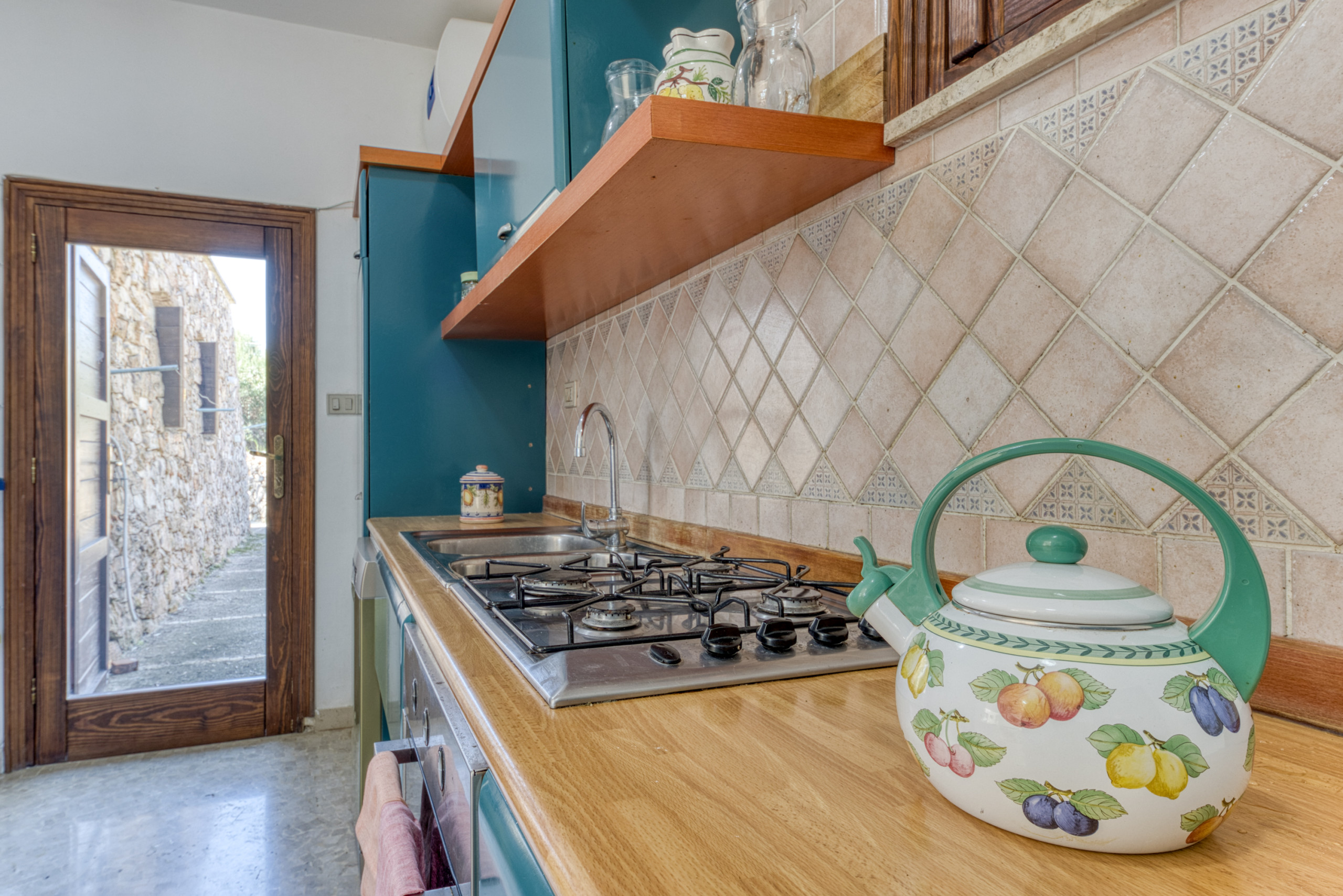 Die Küche ist gut ausgestattet mit Gasherd, Backofen, großem Kühlschrank mit Gefrierfach, Geschirrspüler, Wasserkocher, Geschirr, Besteck und Kochutensilien für Ihre Mahlzeiten. Diese können Sie auch im freien z.B. auf der schattigen Terrasse einnehmen.