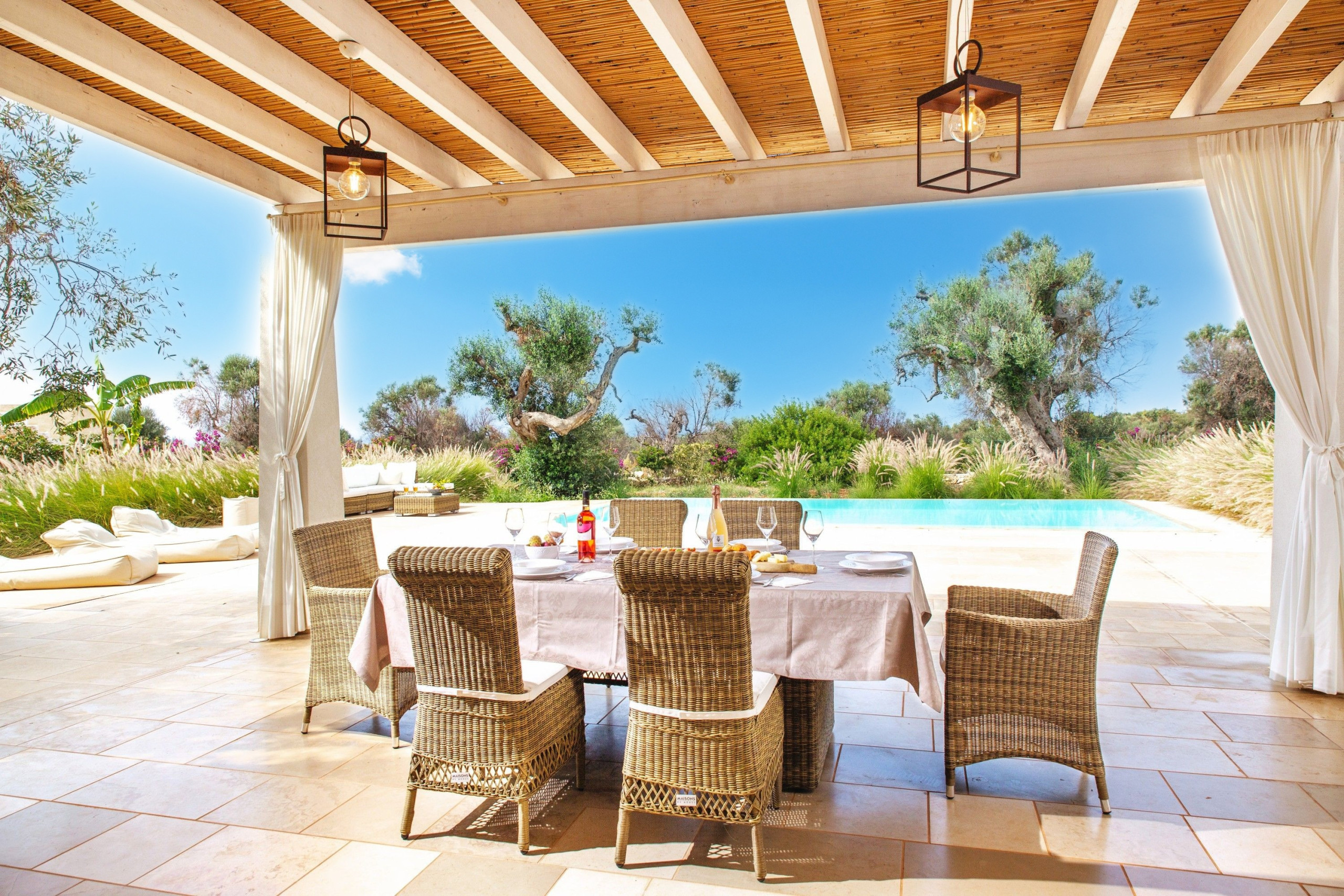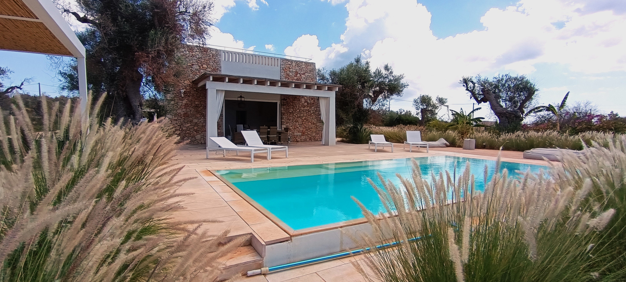 Das Meer ist in Luftlinie weniger als 1 km entfernt. Der nächste Strand ist Marina di Felloniche (Sand und Felsen), ca. 1,5 km entfernt. Die langen, goldenen Sandstrände rund um Pescoluse sind in wenigen Autominuten erreichbar. Supermärkte und mehrere gute Restaurants sind weniger als 5 km entfernt, so wie der Ort von Santa Maria di Leuca mit seinem Leuchtturm und dem Yachthafen, Ausgangspunkt für Bootstouren entlang der Küste und zu den vielen nur vom Meer erreichbaren Meereshöhlen in den Klippen.