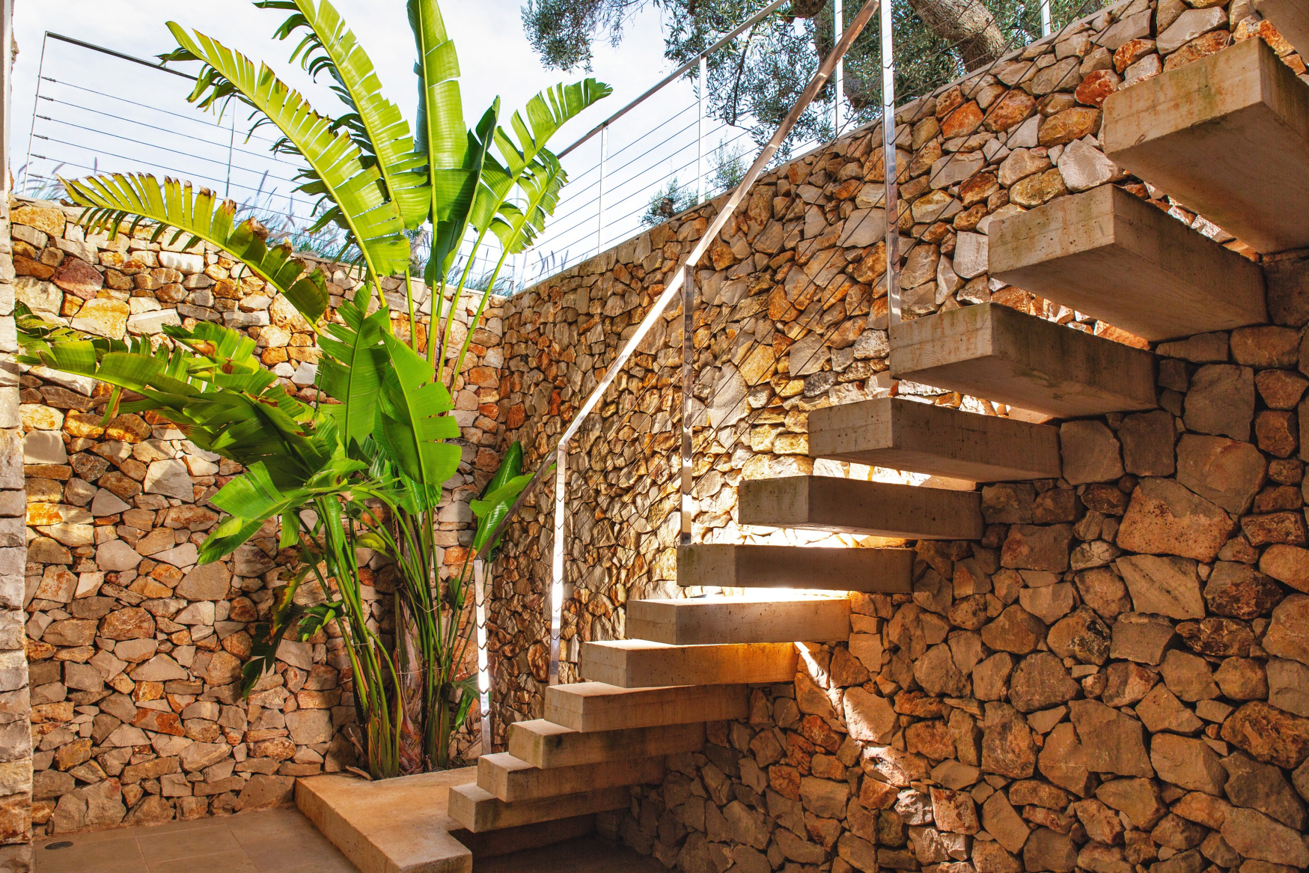 Eine Außentreppe verbindet die beiden Stockwerke.