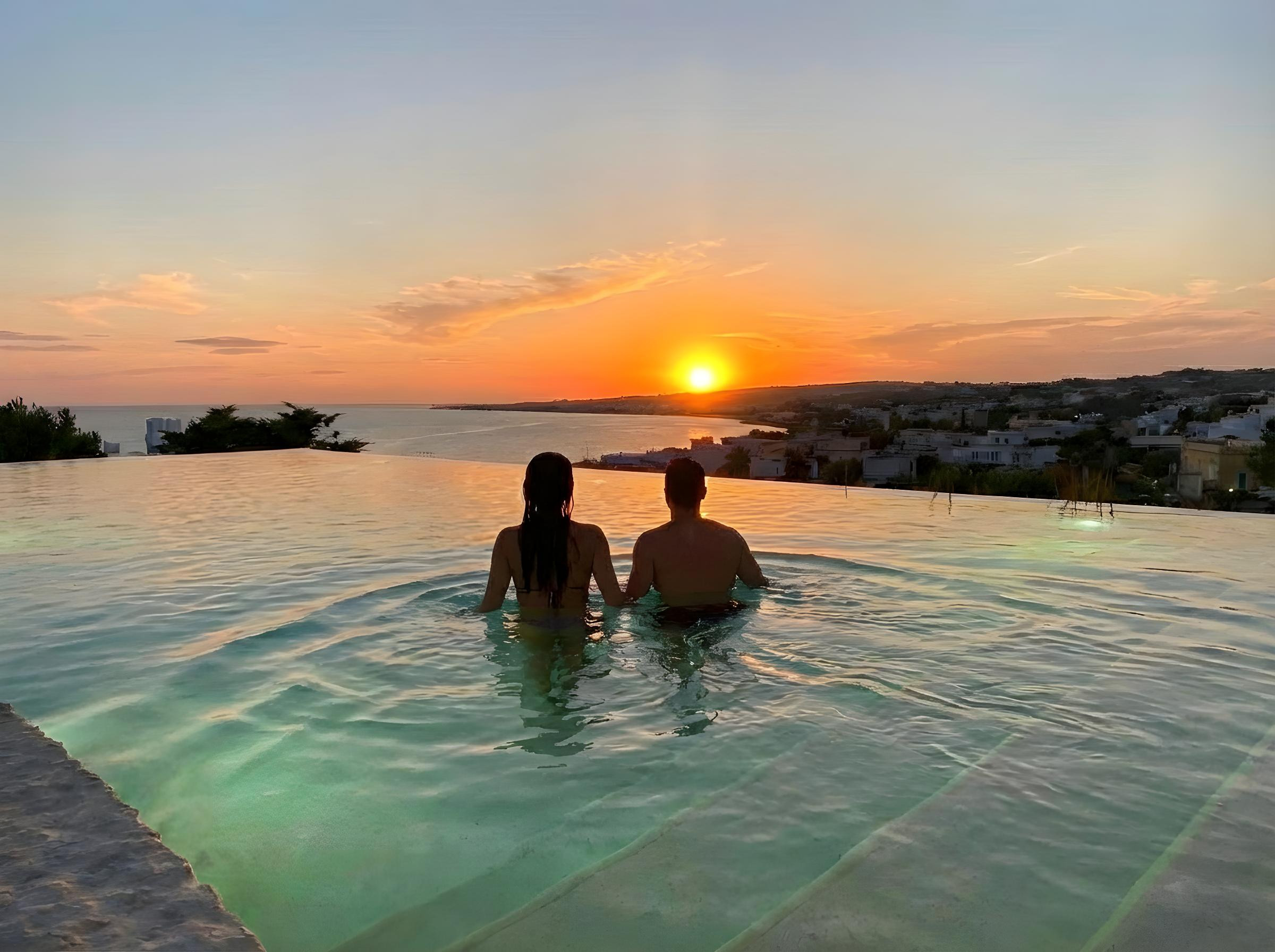 Ein hübsches kleines Steinhäuschen mit privatem Infinity-Pool und fantastischem 180-Grad-Meerblick direkt über dem Städtchen Torre Vado an der Südspitze Apuliens.