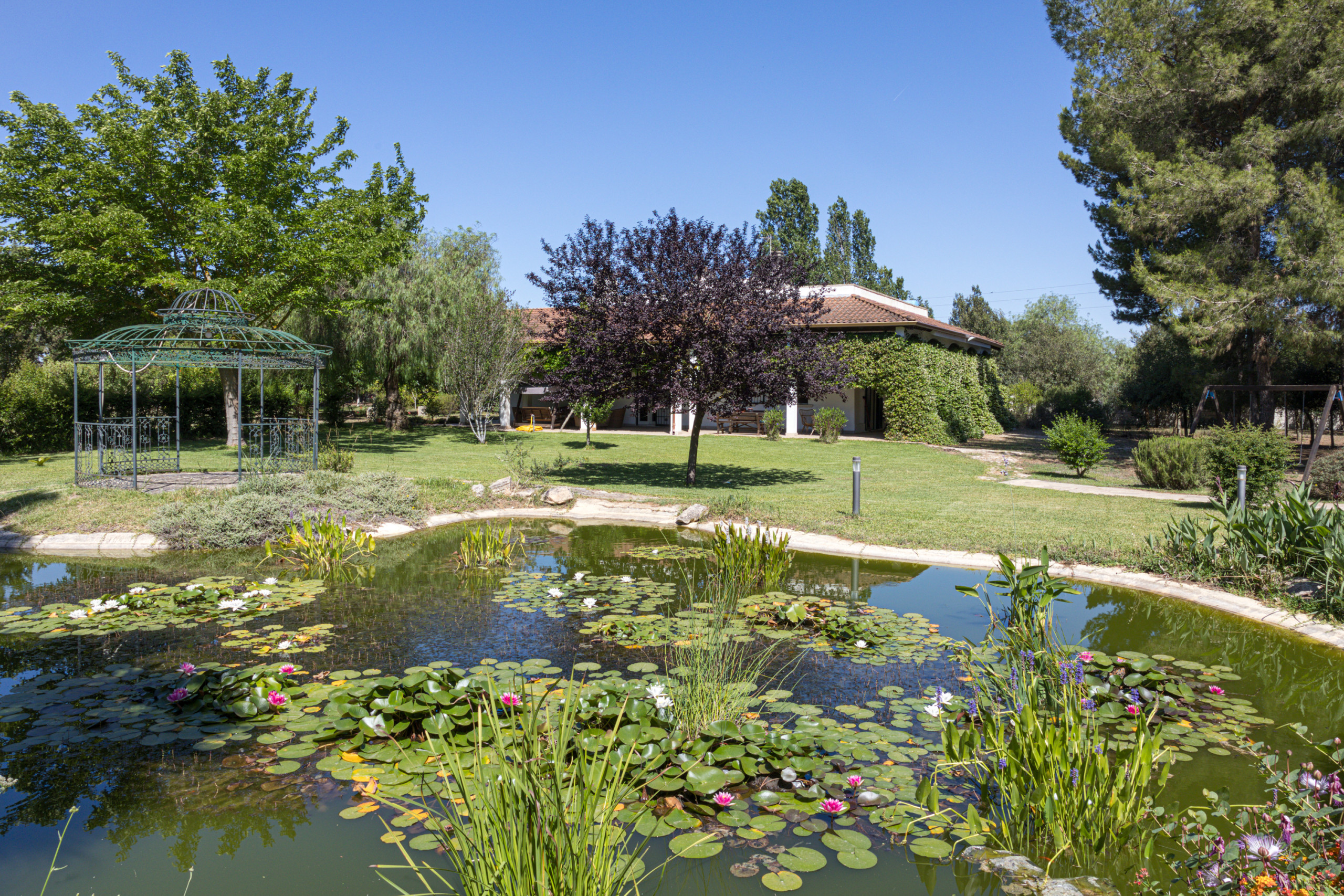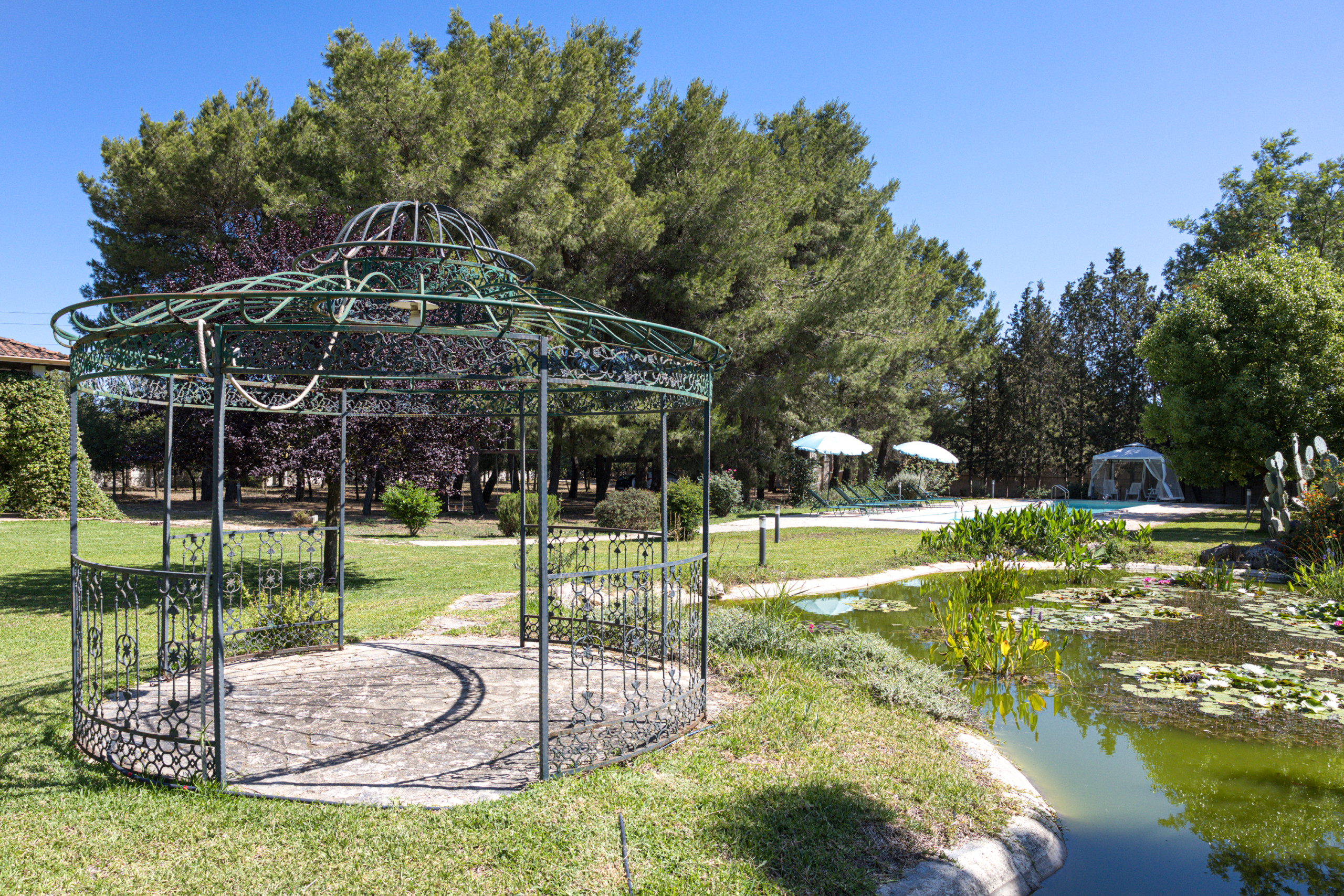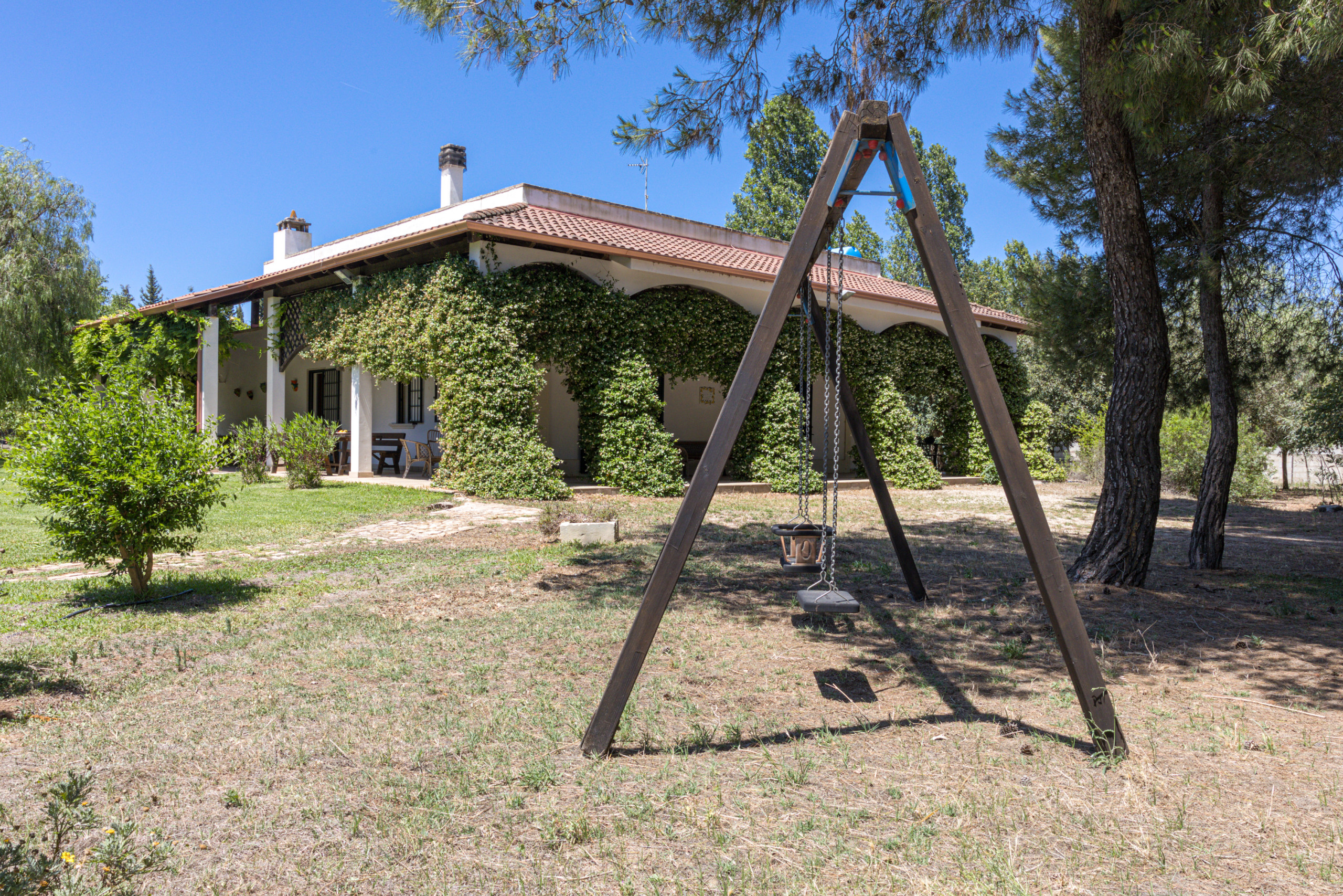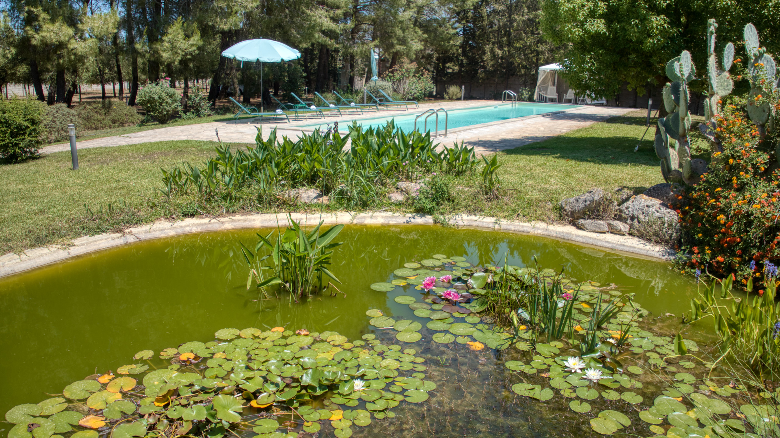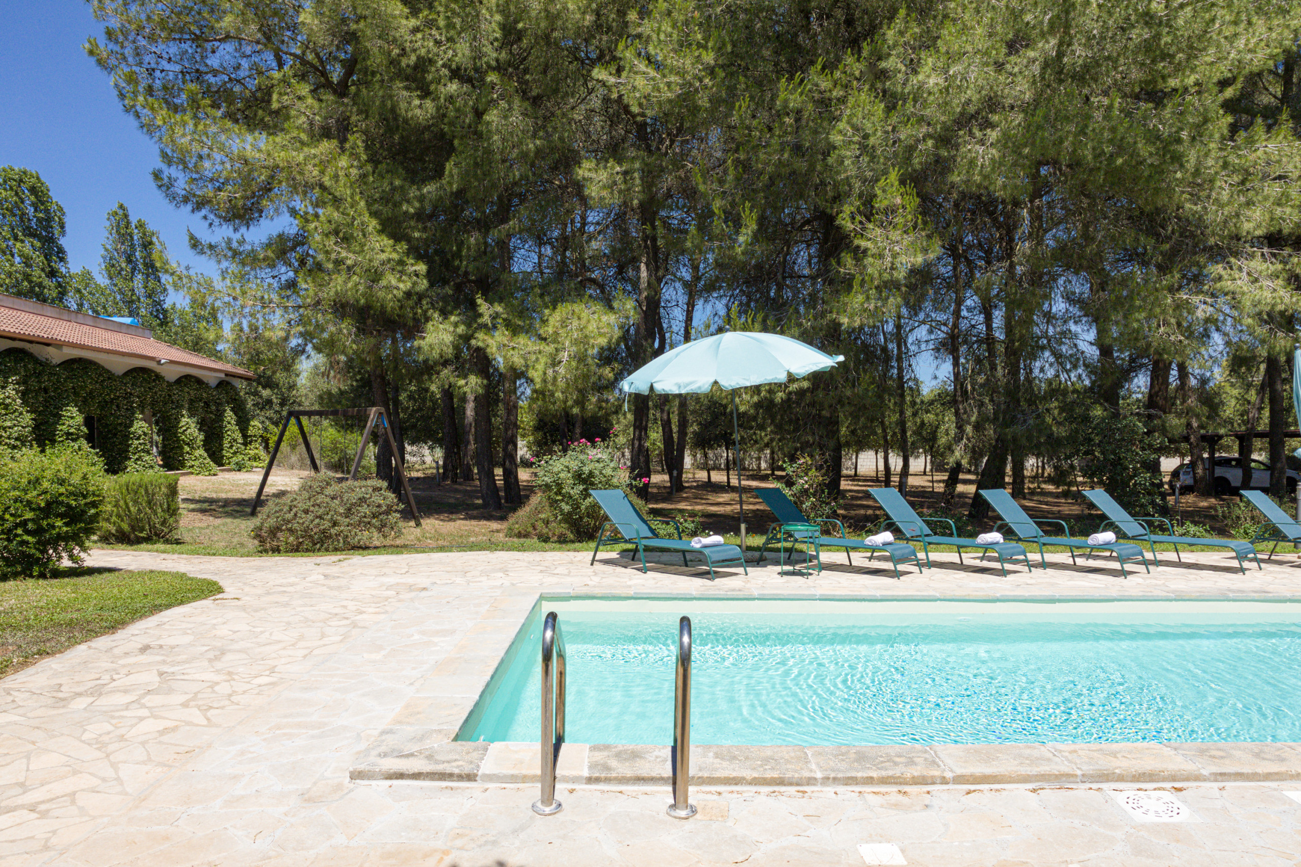 You are booking a beautiful country house that has been owned by a well known family from Lecce for decades. The house is embedded in a park-like garden, with a huge pool (approx. 18x4 meters), a water lily pond with goldfish, a pine forest, many fruit trees and roses and a boccia court (boules/petanque). Everything at your exclusive disposal and not shared with anybody else.