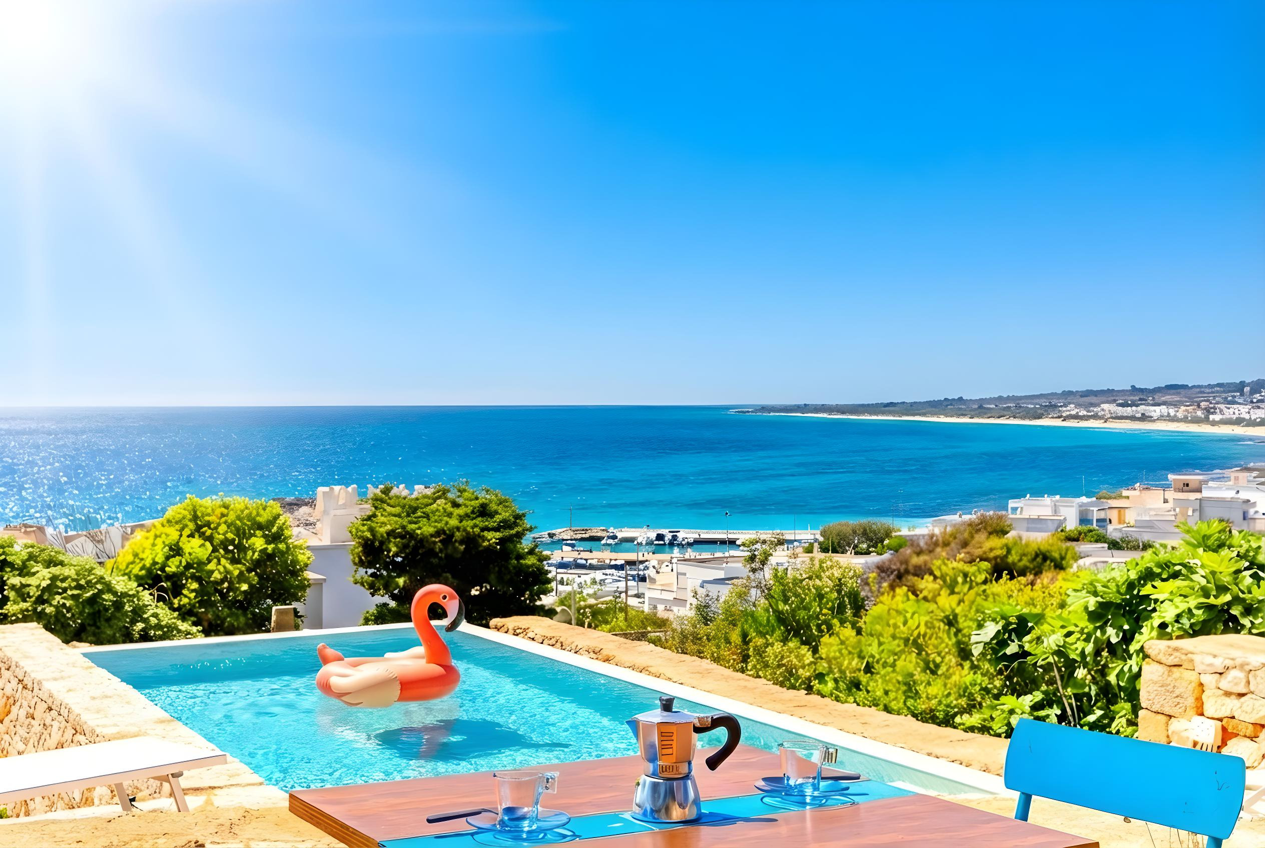 A pretty little stone house with a private infinity pool and fantastic 180 degree sea views directly above the town of Torre Vado on the southern tip of Puglia.
