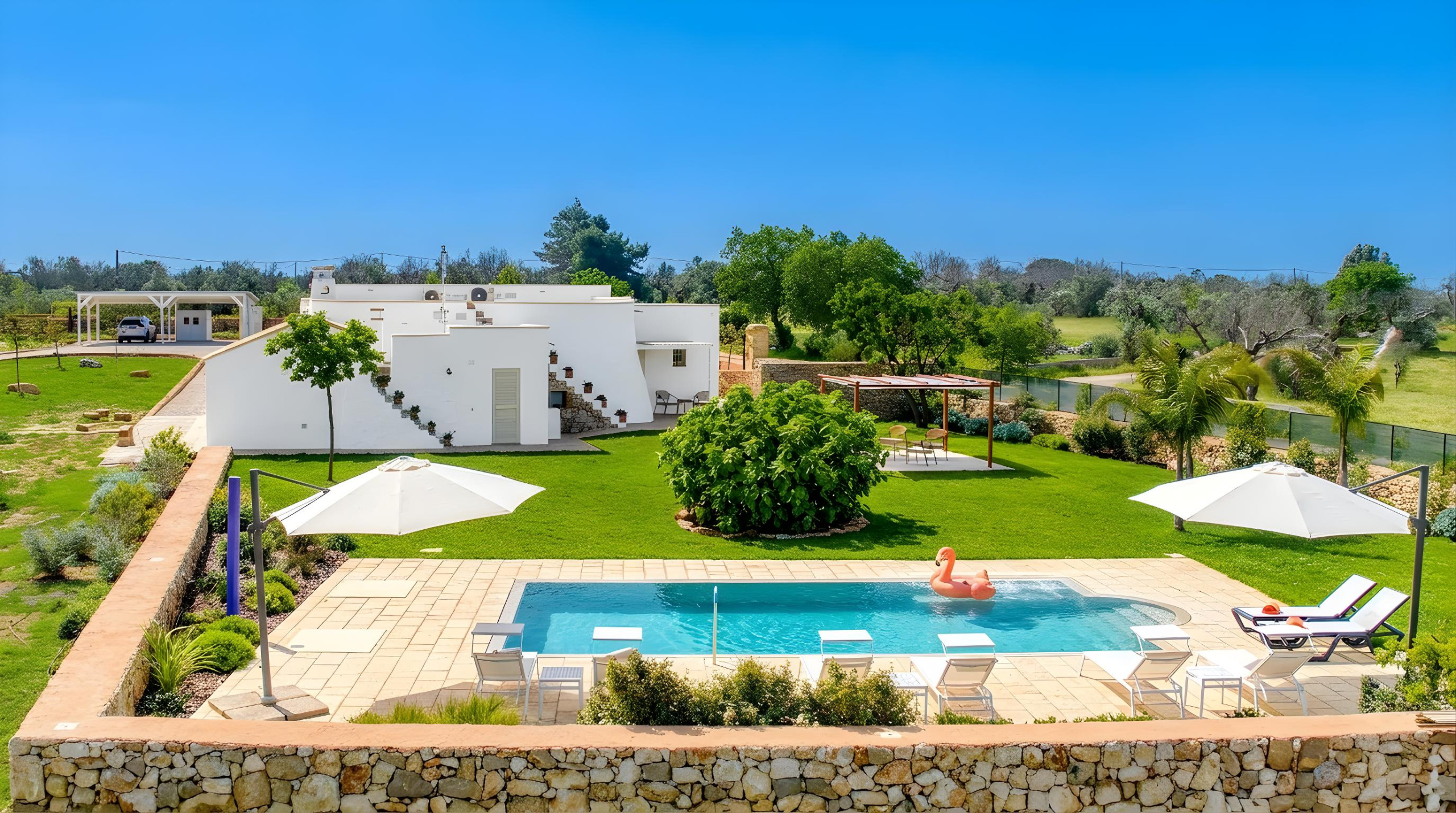 Completely renovated in early 2026, this high-end villa, featuring designer furniture, a large private pool and a garden, is located in the endless space of southern Apulia. Once a simple farmhouse with a bakehouse and stable, it is now a fantastic retreat for a truly special holiday!