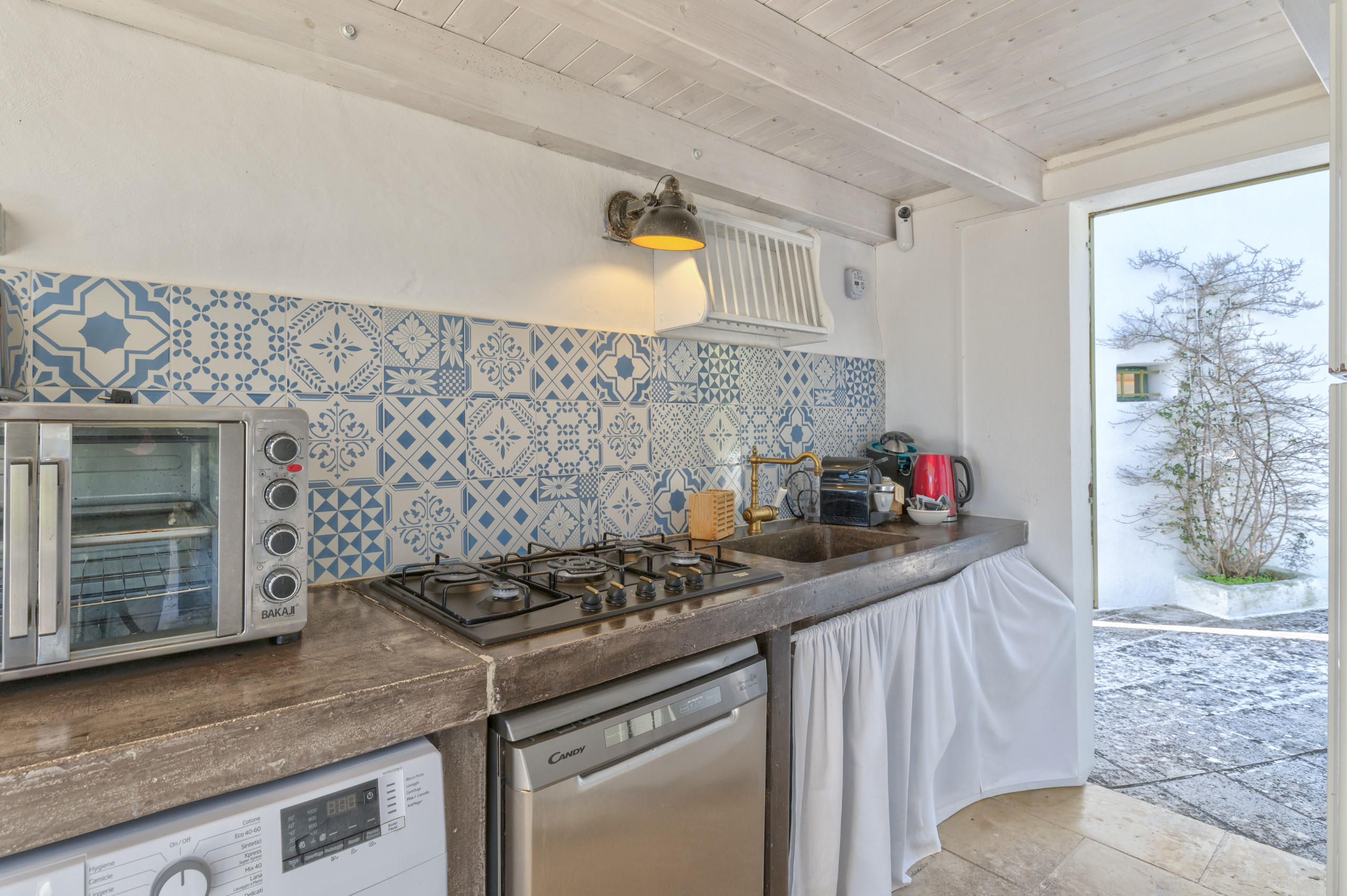 La cuisine indépendante, à gaz, est équipée avec réfrigérateur, four, congélateur, lave-vaisselle, vaisselle/couverts, ustensiles/cuisine, cafetière, grille pain et bouilloire.