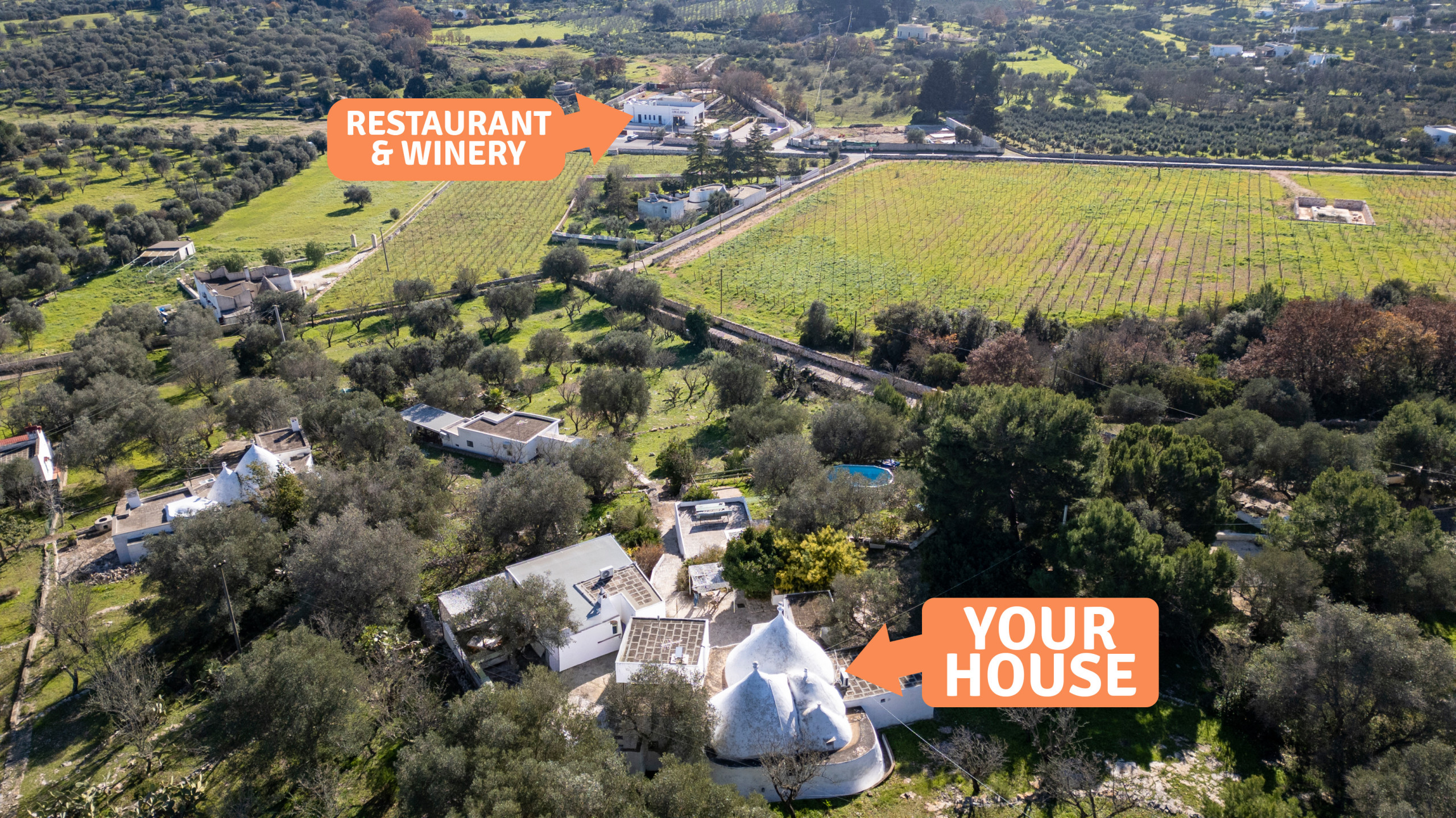 La location se trouve à 0 m du supermarché, 300 m du restaurant "Cantine Amalberga", 3 km de la ville "Casalini", 4 km du restaurant "Pizzeria La Piazzetta", 7 km de la ville "Ostuni", 7 km de la ville "Cisternino", 17 km de la plage de sable "Quarto di Monte Beach", 17 km de la plage de sable "Rosa Marina Beach" et il est situé dans une zone idéale pour familles zone et rural.