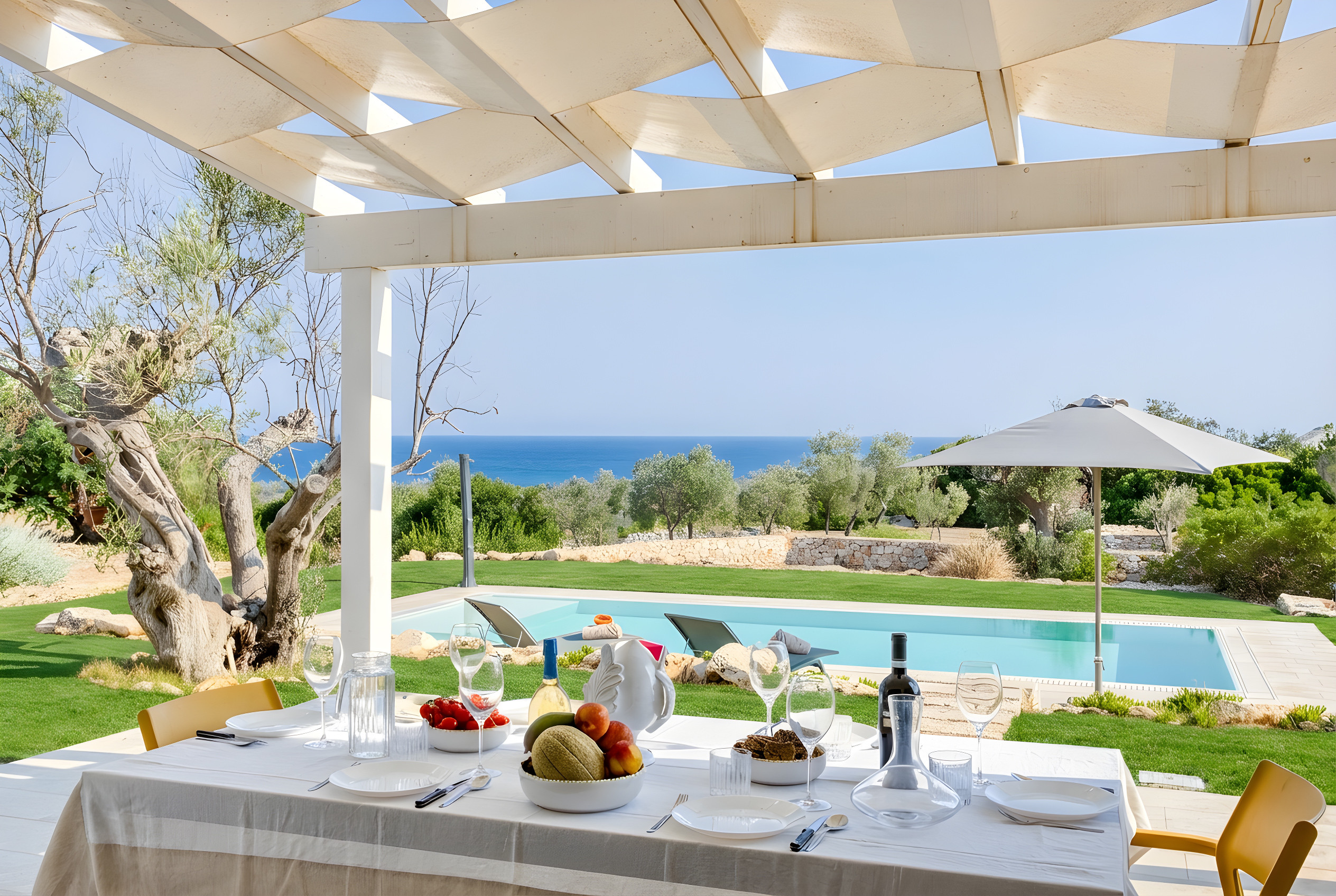 Entourée d'un jardin privé de 10 000 m² planté d'oliviers centenaires et d'une végétation méditerranéenne luxuriante, cette villa de luxe d'exception sur trois niveaux – un joyau de notre collection – offre une intimité absolue et une parfaite harmonie entre confort moderne et beauté naturelle. De chaque recoin, vous pourrez admirer un panorama exceptionnel qui s'étend sur le paysage, jusqu'à la mer d'un bleu profond et le célèbre phare de Santa Maria di Leuca à l'horizon, là où se rencontrent les mers Adriatique et Ionienne.