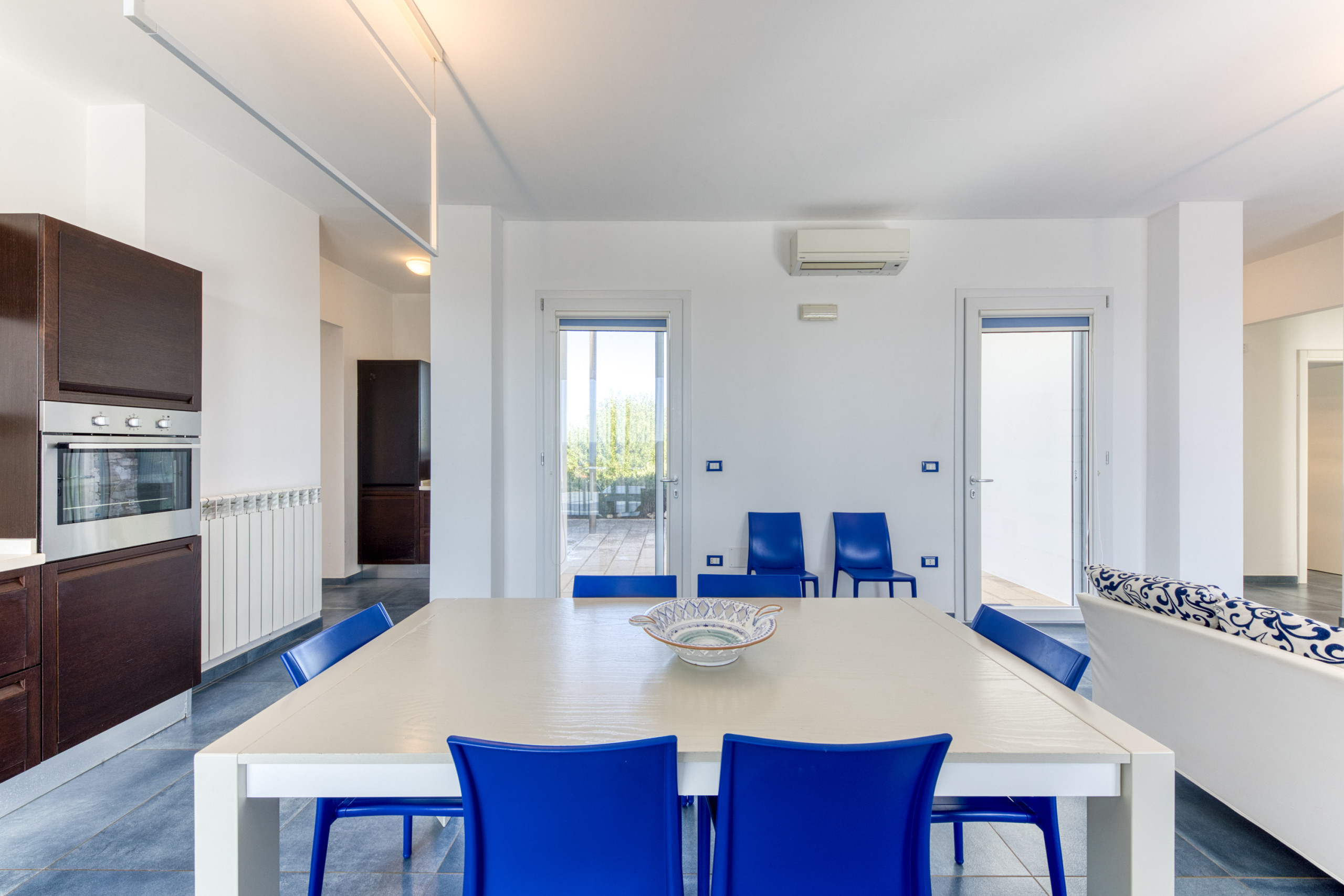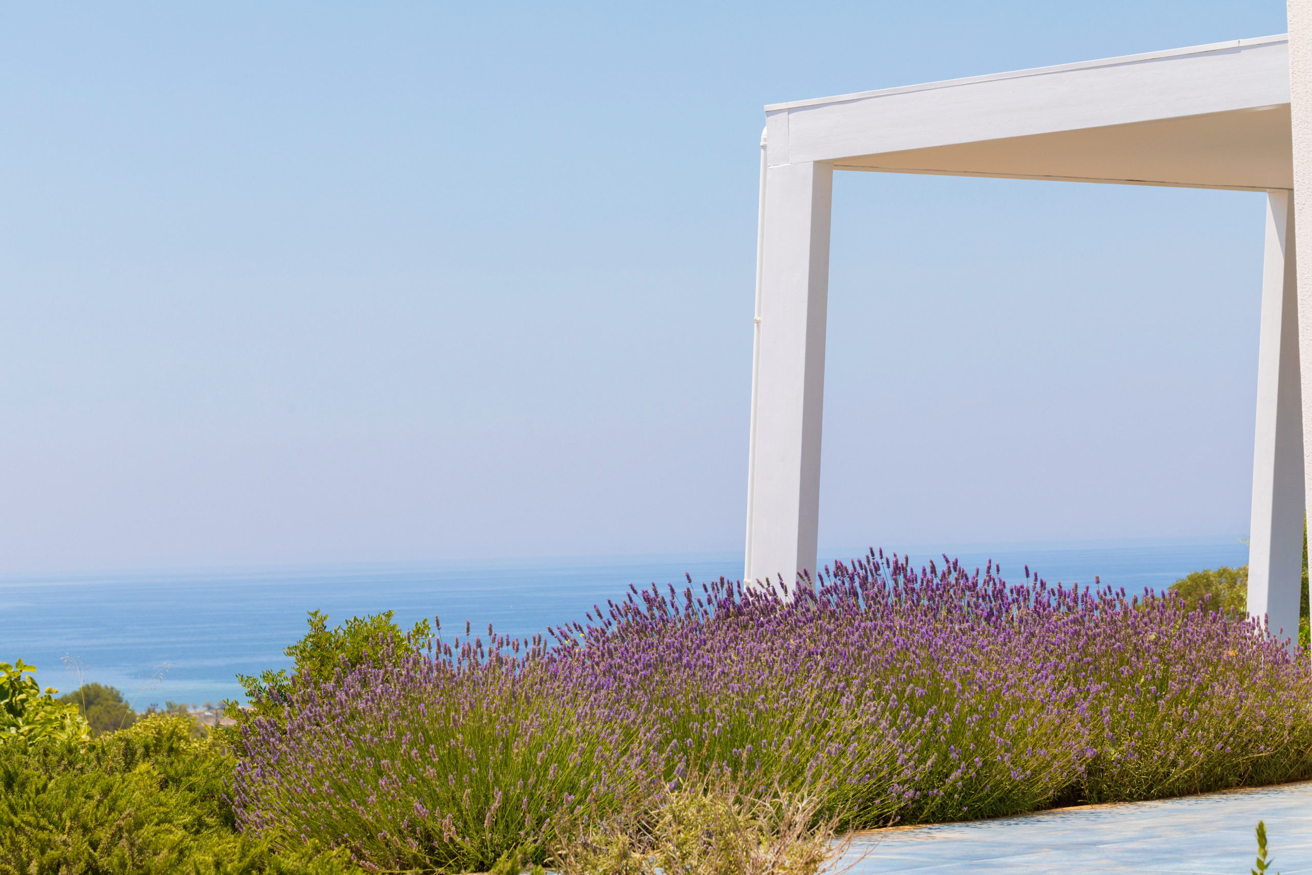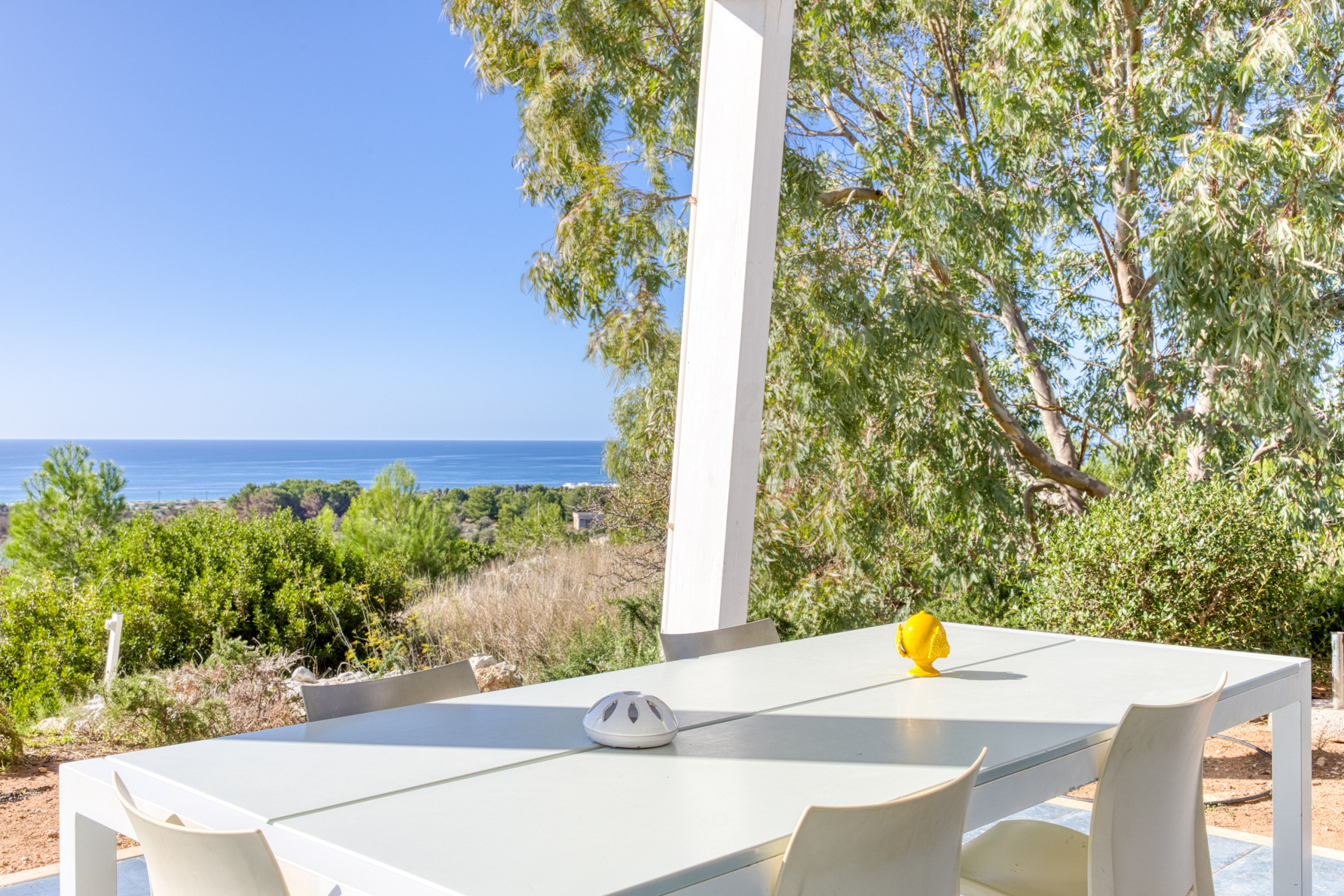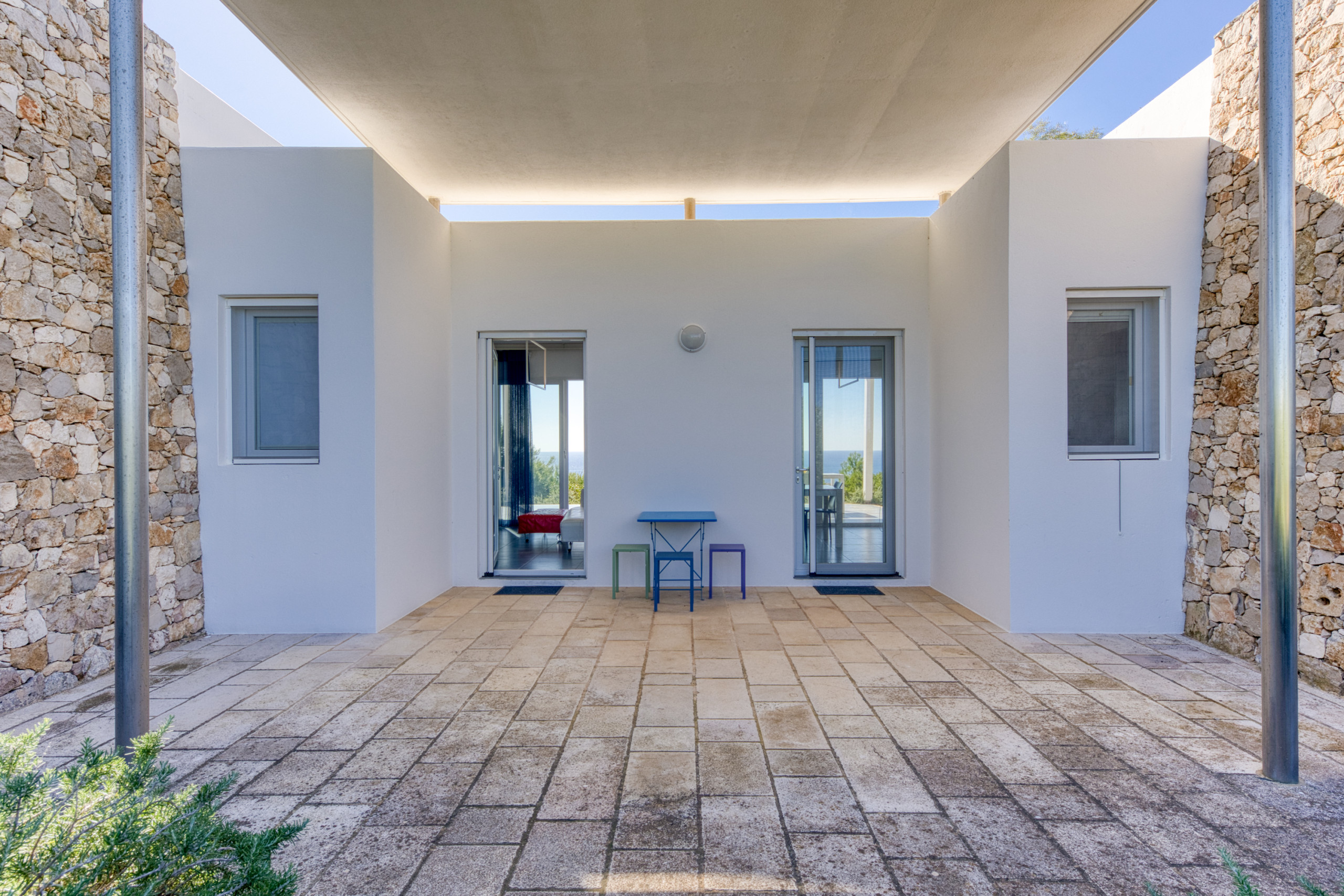 Les intérieurs de la villa sont modernes et entièrement climatisés (froid ou chaud selon la saison). Le grand séjour, ouvert sur la mer avec de grandes baies vitrées, est divisé en un espace séjour avec grand canapé et TV et un espace salle à manger avec cuisine ouverte, table et chaises. La cuisine est équipée d'une cuisinière à gaz, d'un lave-vaisselle, d'un réfrigérateur-congélateur, d'un four, d'un micro-ondes, de vaisselle, de casseroles, d'une cafetière et de tout le nécessaire pour préparer vos repas.