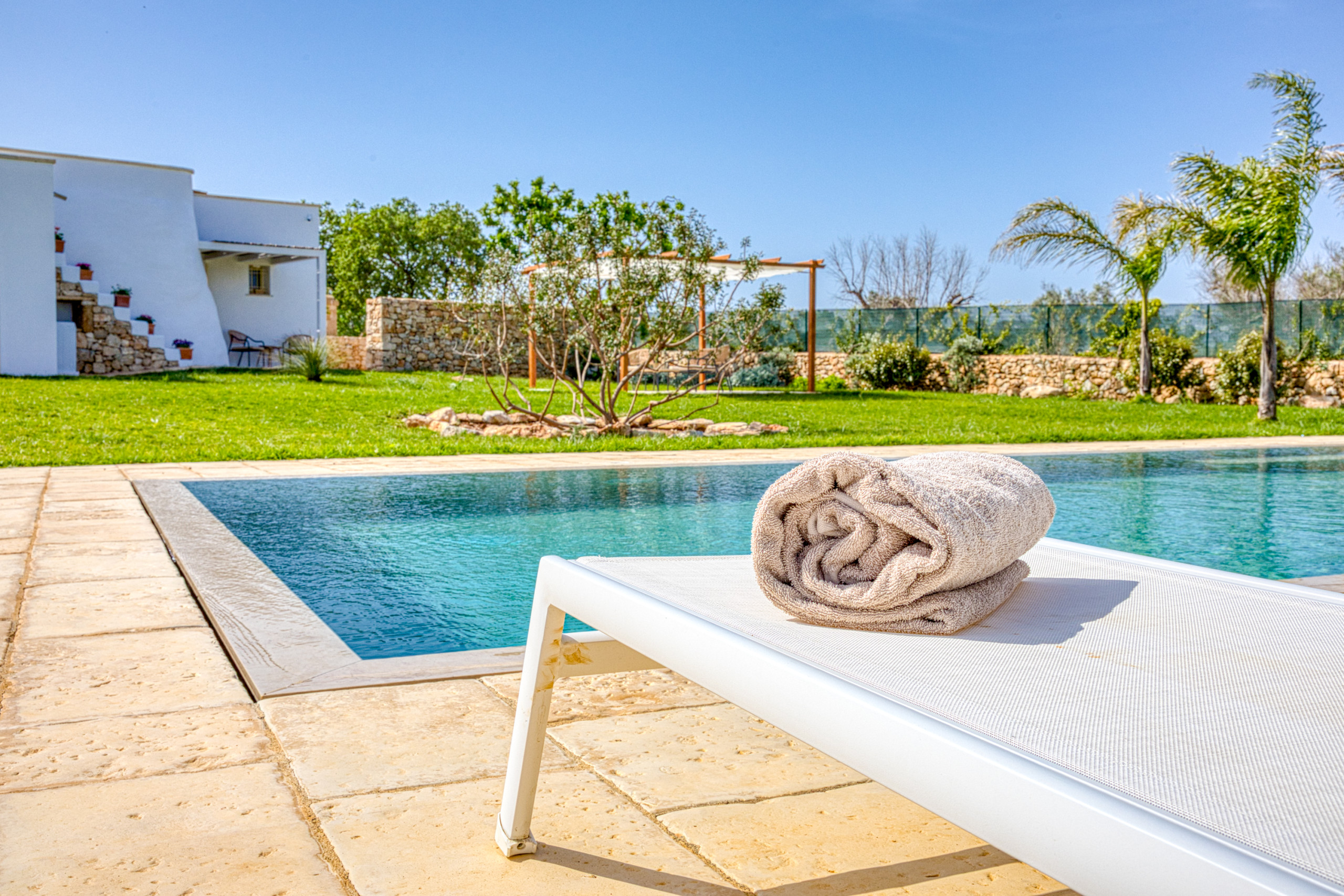 Complètement rénovée au début de 2026, cette villa haut de gamme, dotée de meubles design, d'une grande piscine privée et d'un jardin, est située dans l'espace infini de la Pouille méridionale. Autrefois simple ferme avec un fournil et une écurie, c'est maintenant une retraite fantastique pour des vacances vraiment spéciales !