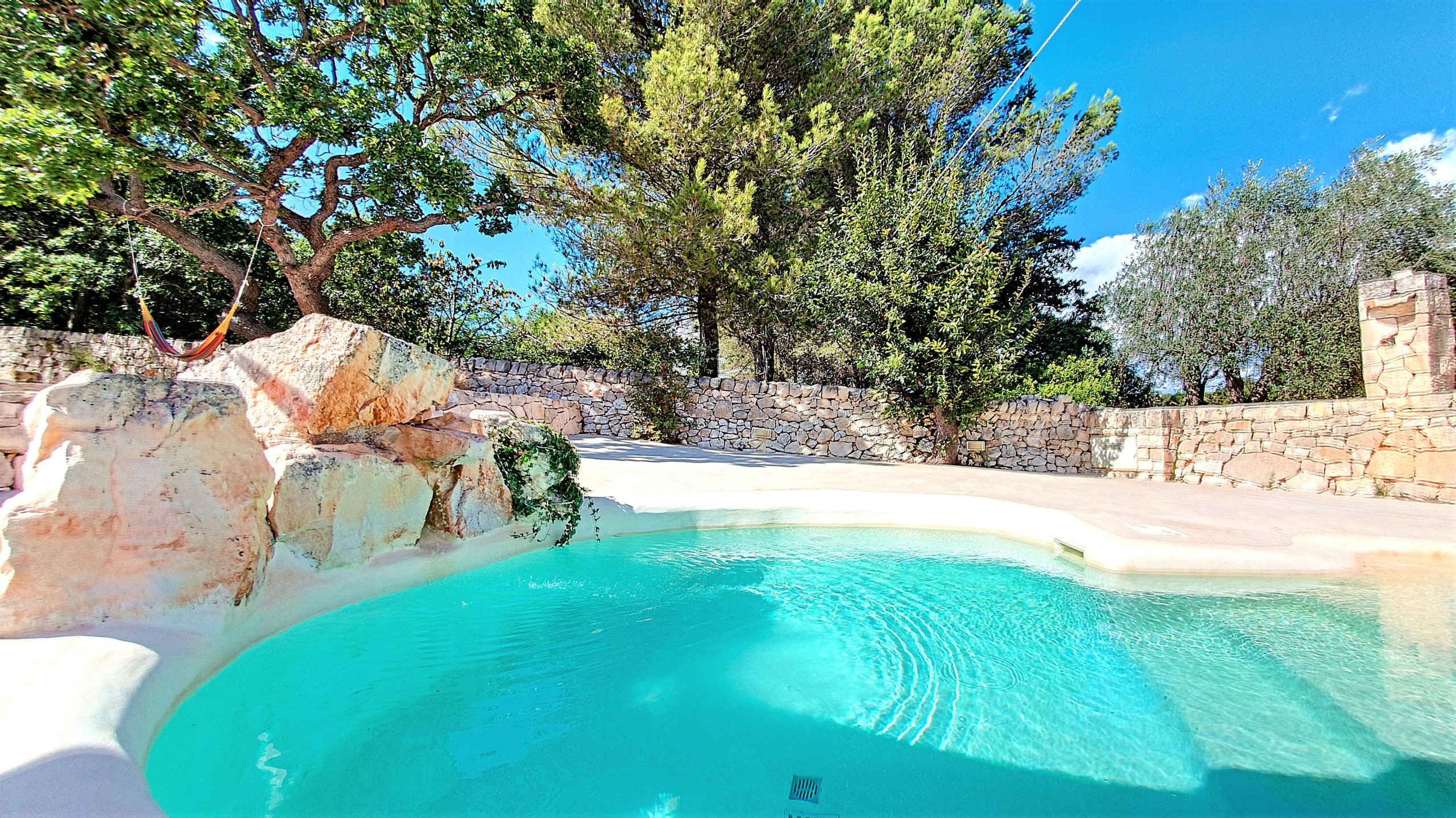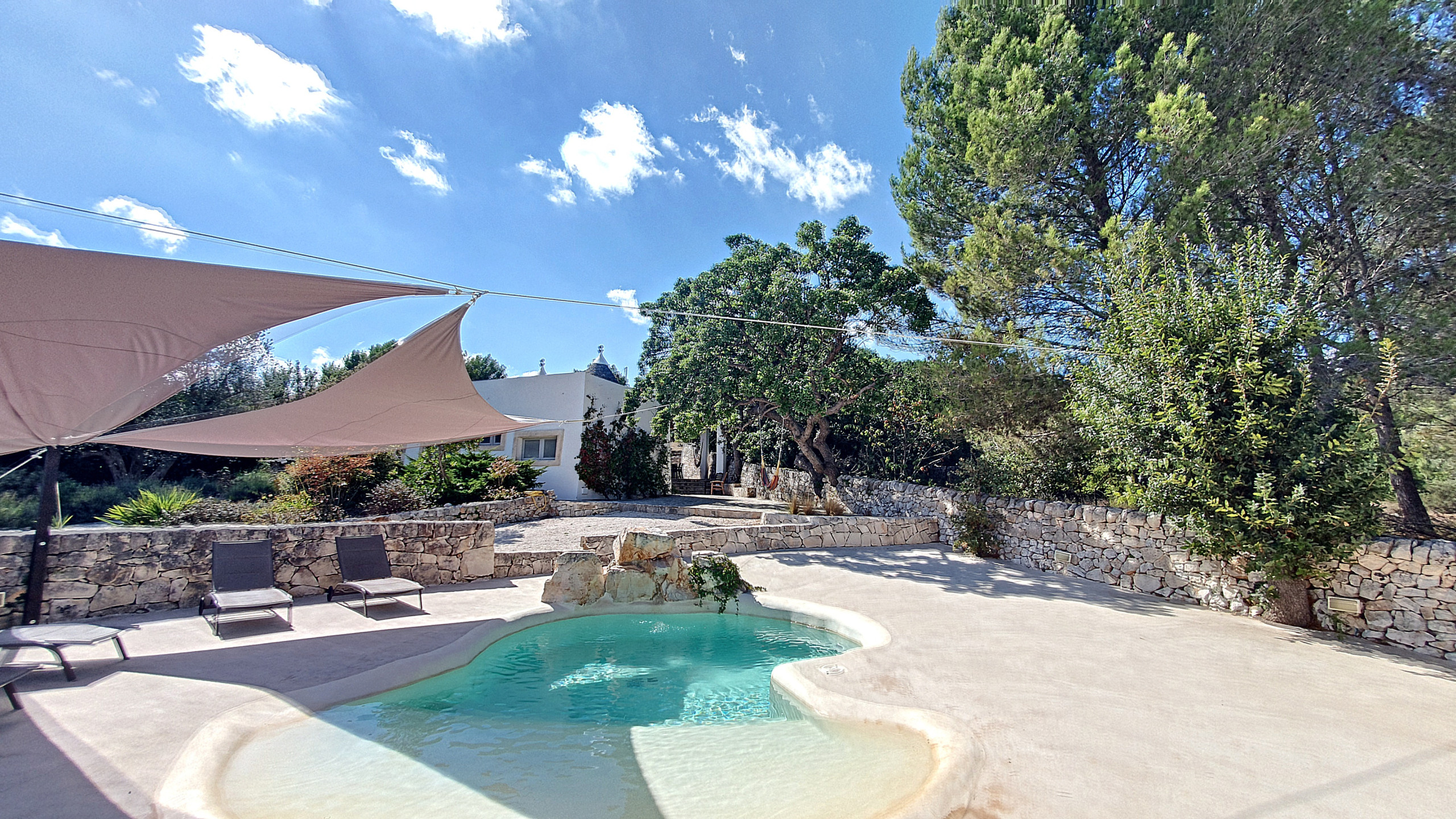 Trascorri la tua vacanza in un trullo! Ristrutturata alcuni anni fa, questa villa combina elementi tradizionali e moderni e, grazie alla sua posizione tranquilla in mezzo agli uliveti e lontana dal rumore del traffico, potrete trascorrere qui una vacanza meravigliosamente rilassante. Godetevi un tuffo rinfrescante nella piscina privata, aperta da maggio a settembre inclusi (con una zona di acqua bassa, adatta anche per i bambini piccoli), prendete il sole su uno dei lettini sulla grande terrazza intorno alla piscina o riposatevi su una delle terrazze ombreggiate al canto delle cicale. E se ne avete abbastanza della pace e della tranquillità: a circa 20 minuti a piedi dalla casa (meno di 1,5 km) inizia il centro storico di Cisternino, uno dei borghi più belli della Valle d'Itria, dove potrete passeggiare e trovare bar, ristoranti, gelaterie, fornai, negozi di alimentari e souvenir a volontà.