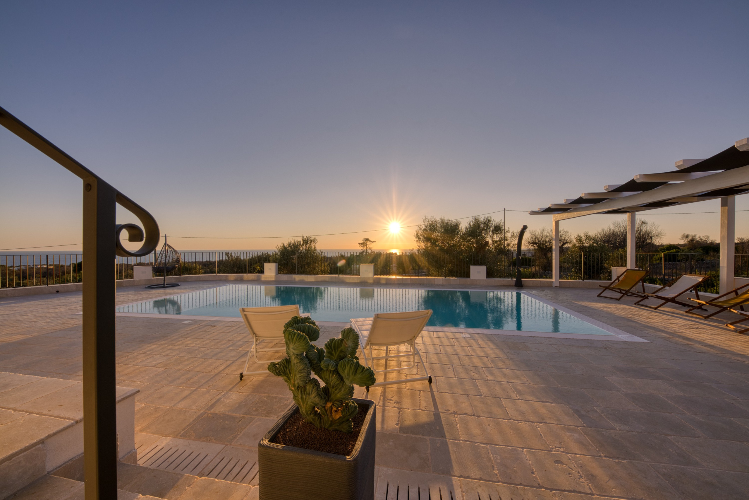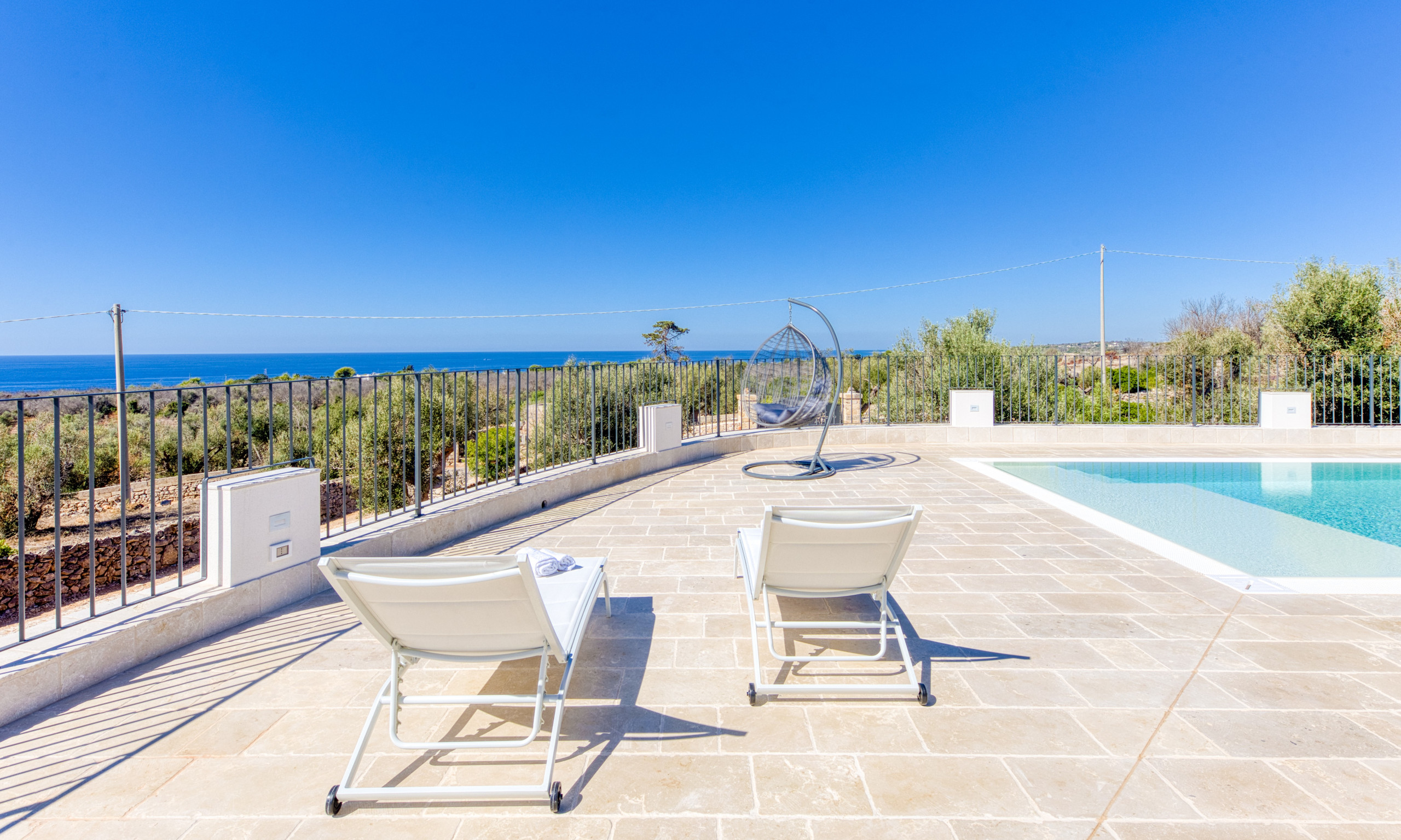 All'esterno, la piscina privata a sfioro di circa 10x4 metri è un angolo di paradiso con una vista spettacolare che si estende fino all'orizzonte. La piscina è riscaldabile su richiesta (supplemento di 10€ al giorno + 100€ per la preparazione), permettendone l'utilizzo quasi tutto l'anno. Gli ampi terrazzi esterni sono perfetti per momenti di relax sotto il sole o nelle aree ombreggiate. Una doccia esterna e un barbecue sono pronti a rendere le vostre serate ancora più speciali, con la possibilità di cenare all’aperto, sorseggiando un buon vino salentino e godendo della serenità che solo un luogo come questo può offrire.