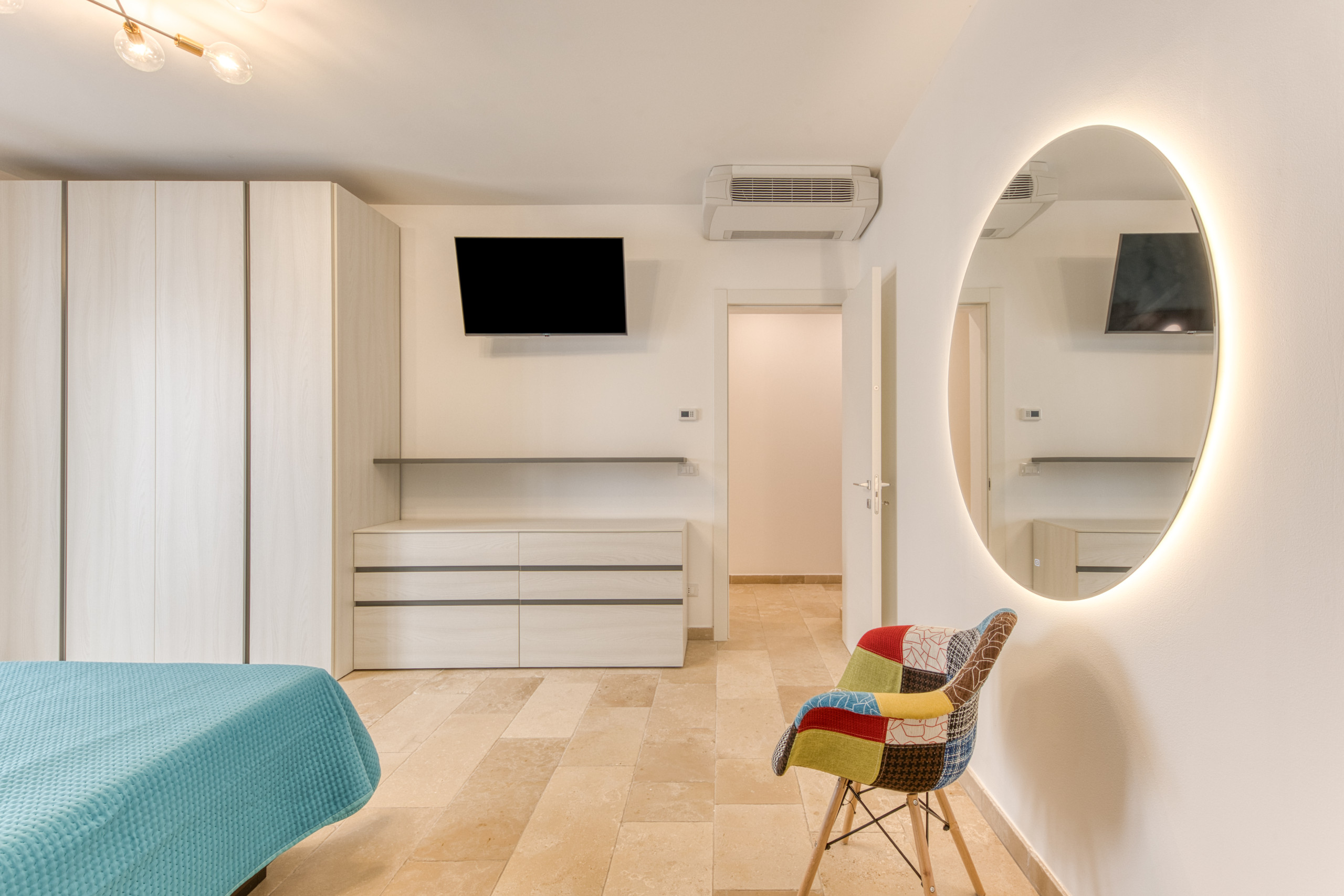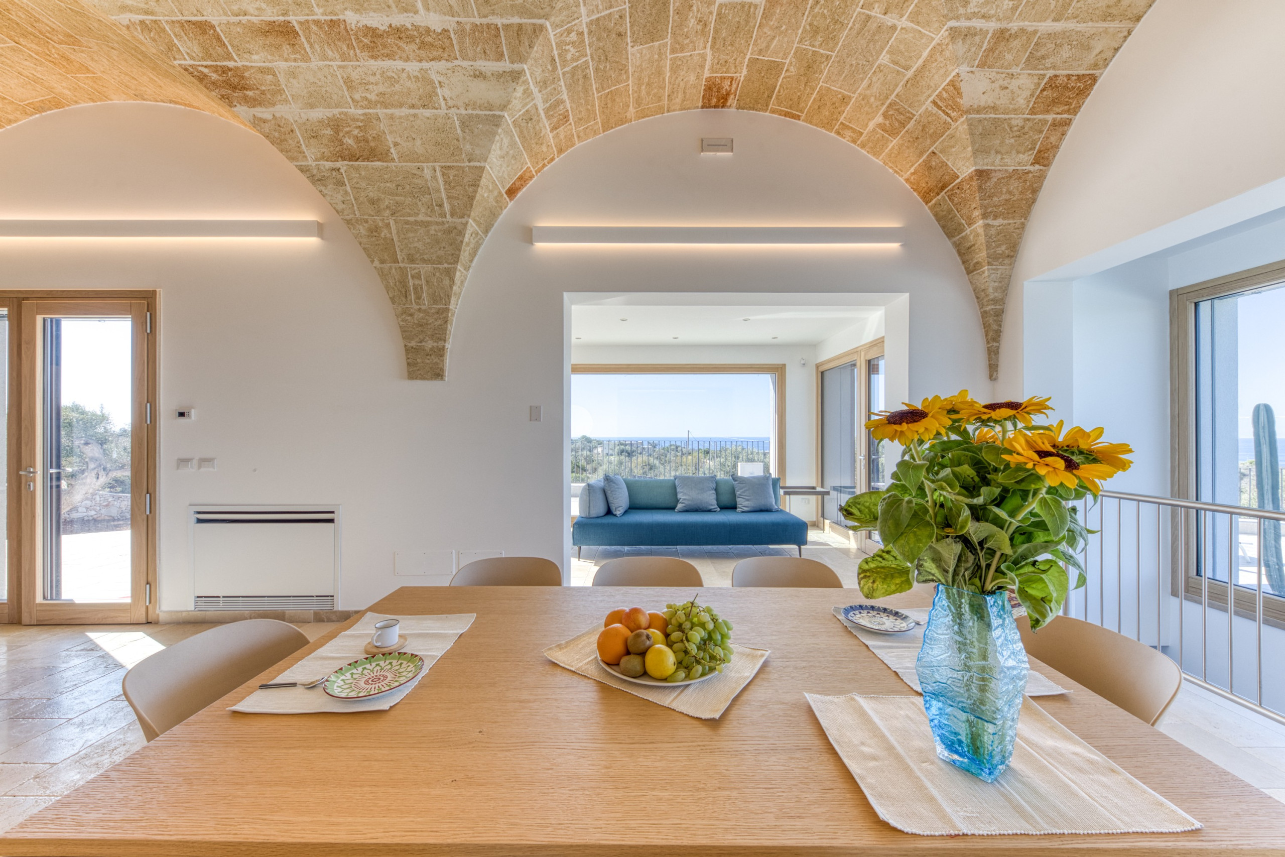 Il design minimalista e colorato si fonde armoniosamente con gli elementi tradizionali dell’architettura salentina come le splendide volte a stella in tufo, creando un ambiente raffinato ma accogliente. Ogni stanza è dotata di aria condizionata con regolazione individuale della temperatura, per garantire il massimo del comfort in ogni momento della giornata. Per il relax totale, 4 TV satellitari sono a disposizione degli ospiti.