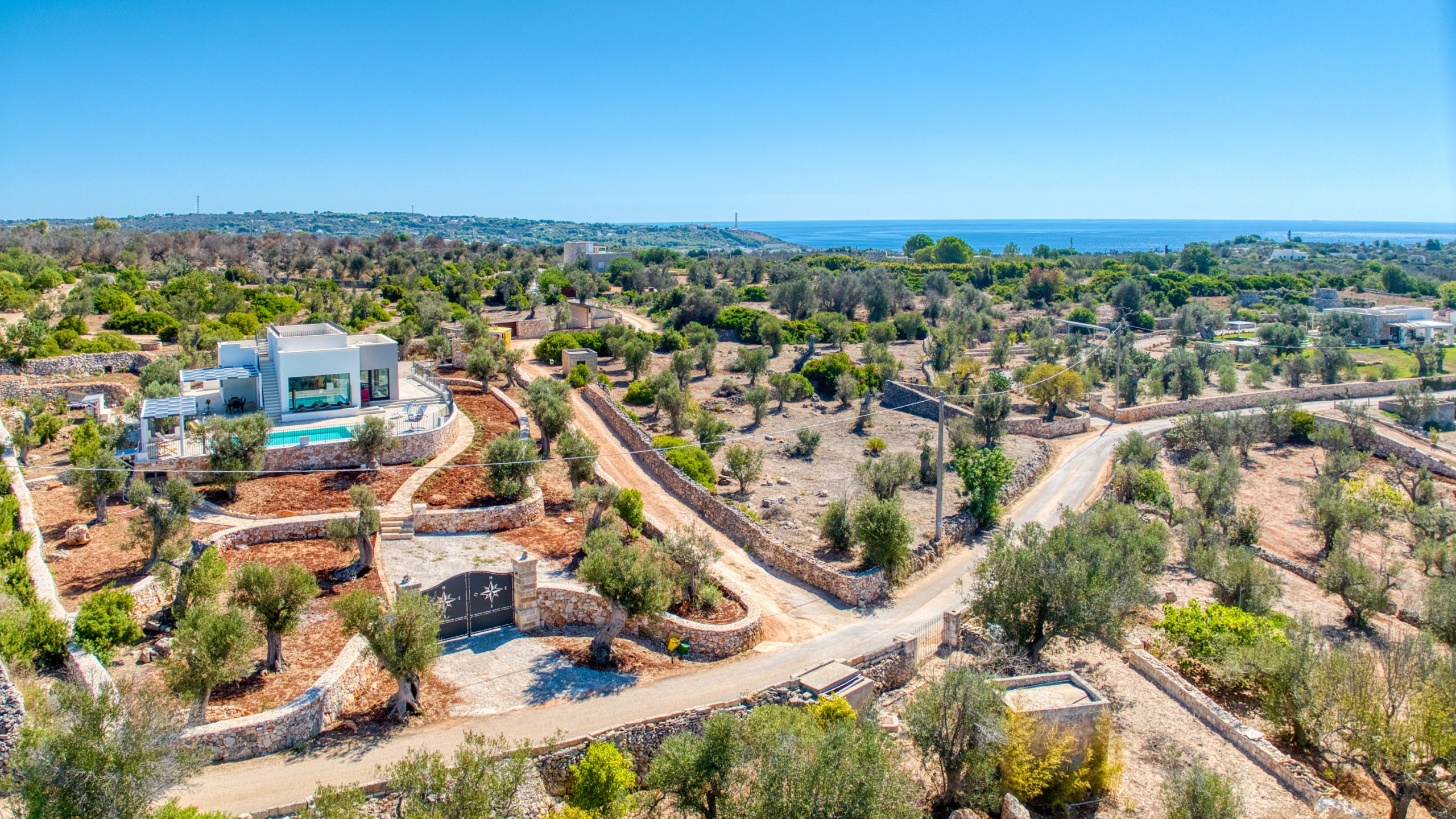 Incorniciata dalle dolci colline del Capo di Leuca, coperte di ulivi e macchia mediterranea, questa modernissima villa tra le più lussuose della zona è il rifugio esclusivo che stavi cercando. Appena completata nel settembre 2025, essa offre una vista da sogno a ben oltre 180° che spazia sull’incantevole mar Ionio con le sue tonalità infinite di azzurro e sulla verdeggiante campagna circostante. In lontananza, l’imponente faro di Santa Maria di Leuca, simbolo dell’incontro tra il Mar Ionio e l’Adriatico, si staglia all’orizzonte, regalando un panorama che toglie il fiato.